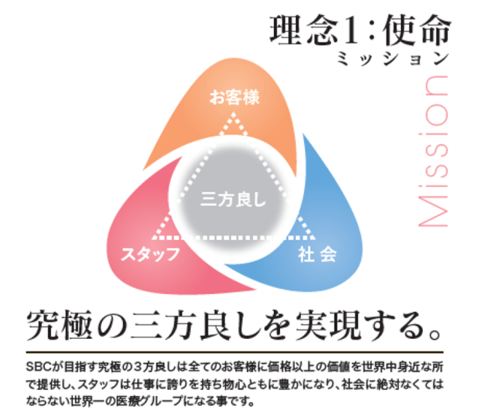 SBCメディカルグループが掲げる企業理念は「究極の三方良しの実現」です。